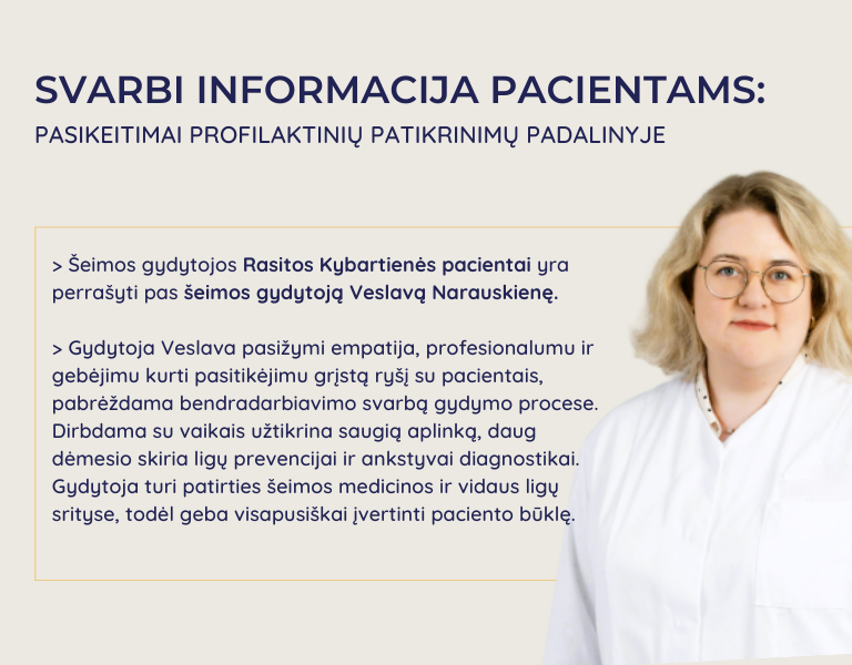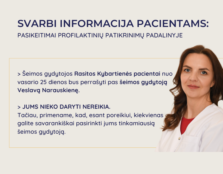 Prašome būti atidiems ir nepraleisti gydytojo skambučio.